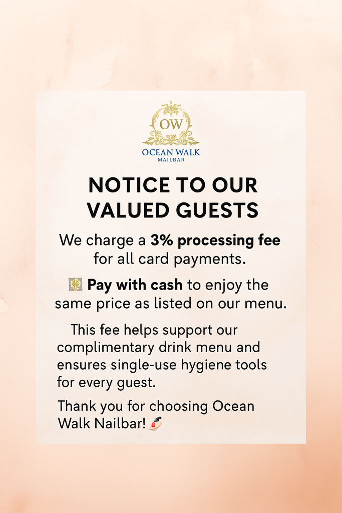Our passionate team of highly trained technicians is dedicated to crafting personalized looks tailored to your desires, ensuring every visit leaves you radiant, confident, and rejuvenated. Discover the perfect harmony of style and serenity at Ocean Walk Nailbar — where beauty meets excellence.